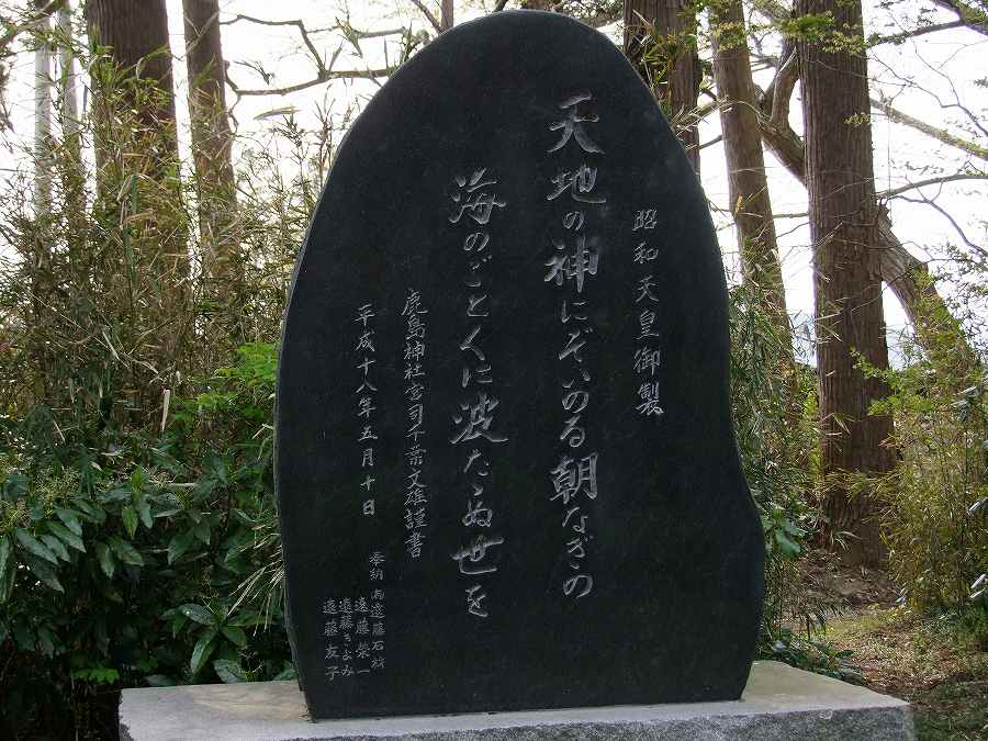 ・歌意:要石に鹿島の大神が降臨して守護っているから日本の国土はぐらぐらしないと云う意